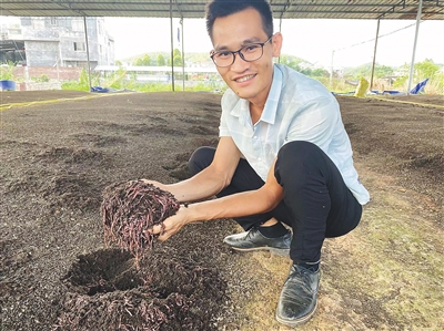 “瞧,成千上万条蚯蚓在这里不眠不休,把废料吃进肚子里,再排泄出来就成了富含有机质的有机肥。”5月23日,在澄迈润来种养殖农民合作社蚯蚓养殖基地,理事长王成军掀开土层,只见许多蚯蚓在黑色“土壤”中扭来扭去。