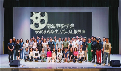 海口经济学院南海电影学院表演系学生观察生活练习汇报展演。
