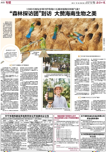 “近年来,在海口市政府的主导下,五源河湿地公园得到很好的保护,也可以看到海南加快推动国家生态文明试验区的决心和努力。此次‘森林探访团’能在城市中探访到湿地公园,感受到海南生物多样性之美,是在践行绿色低碳生活中掀起的一份浪漫。”刘晨说。