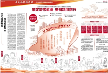 当前,海南处在封关运作准备工作加快推进的关键时刻。省第八次党代会深入落实习近平总书记重要讲话精神,系统谋划了未来五年的发展蓝图,明确提出了“一本三基四梁八柱”战略框架,科学部署了“八个自由贸易港”建设的重点任务,为我们牢记嘱托、勇践使命,不折不扣落实党中央决策部署,推动海南高质量发展提供了路线图。时不我待,只争朝夕!我们当坚定信心、乘势而上,激发奋进之志、弘扬实干之风、务求发展之效,一步一个脚印闯出新路子、展现新作为、迈出新步伐,奋力把殷切嘱托转化为现实,将海南自由贸易港建设推向不可逆转的发展轨道。