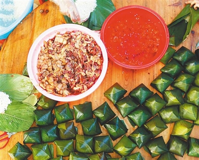 传统海南粽子以猪肉和咸蛋黄为馅,滋味鲜香。