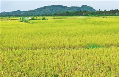 眼下正值粽子热销季,在定安县岭口镇的田洋上,黄澄澄的稻穗随风摇曳,农户在地里忙着收割。经干燥、筛谷、碾压等工序加工产出的定安富硒糯米,将被运往本地的粽子加工厂,成为制作定安粽子的原料。