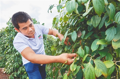 海垦东昌胡椒公司职工在采摘胡椒。本报记者 封烁 摄