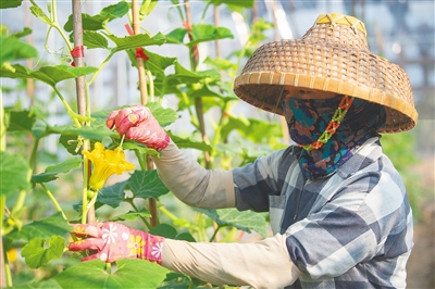 在位于三亚市崖州区的国家现代农业(种业)产业园,海垦南繁集团组织农户开展田间管理工作。本报记者 袁琛 摄