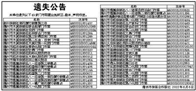 本单位遗失以下43家门市部营业执照正、副本,声明作废。