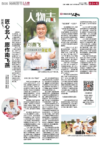 北燕南飞,在琼停留。在中交第四公路工程局有限公司海南分公司总经理刘燕飞看来,他的名字里早就藏着他和海南的渊源。