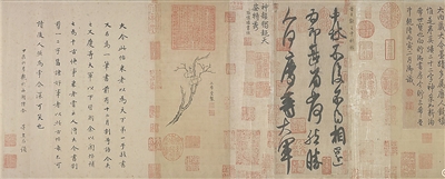 清代,天下收藏尽入清内府。作为清代第一大收藏家,乾隆皇帝被后人戏称为“弹幕小王子”。他曾在王献之《中秋帖》上密密麻麻钤(盖)了80多方印:“乾隆御览之宝”“三希堂”“石渠宝笈”“三希堂精鉴玺”“宜子孙”“乾”“隆”……凡进入清廷内府的精品,多被他盖得“红红火火”,宛若灯会。