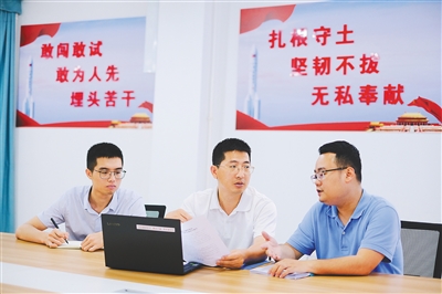 ③ 文昌国际航天城管理局办公区内,工作人员在讨论工作。