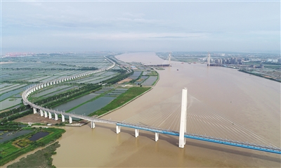 南沙港铁路的跨江铁路桥。新华社发
