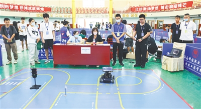 6月25日,第二十四届中国机器人及人工智能大赛海南省赛在海口拉开帷幕。来自海南大学等10余所院校的140多支队伍入围省赛,共同角逐全国总决赛资格。图①为比赛现场,图②为比赛现场的机器人。