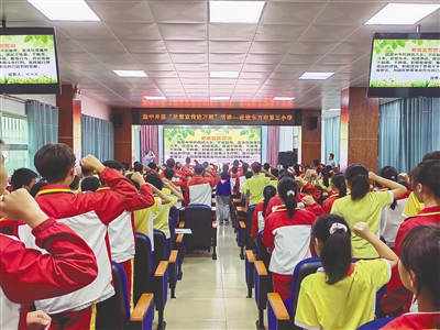“蒲公英”禁毒宣讲团联合多部门组织开展的“禁毒宣传进万家”活动走进东方市第三小学。
