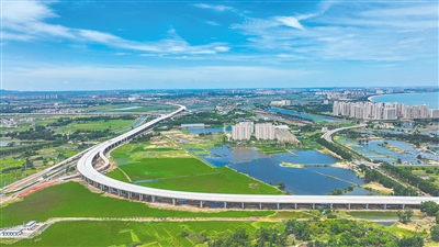 据了解,该项目是海南省高速公路连接全国高速公路网的唯一通道,全长13.727公里,采用双向6车道高速公路标准,全线采用桥梁高架方式布设。本报记者 张茂 摄