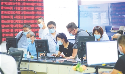 6月25日,在文昌市政府政务服务大厅,何君正在电脑前梳理近期待办事务。