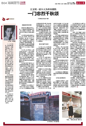 王文明不仅自己为革命献出了宝贵的生命,还有7位亲人在革命斗争中牺牲,王家可谓一门忠烈。