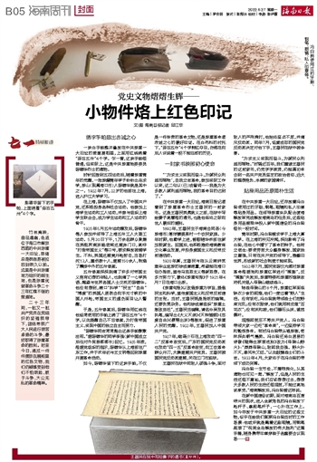 如今,陈德华留下的这块手帕,不仅是一件珍贵的革命文物,还是琼崖革命者赤诚之心的最好印证。在白布料的衬托下,“毋忘五卅”4个字鲜红夺目,仿佛在向后人诉说着一段不能忘却的历史。
