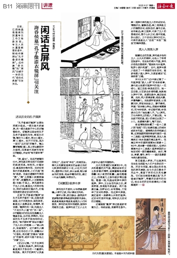 软玉温香入梦来,不过是屏风在世俗生活里与人们产生联系的一角。历史长河里,曾出现过形形色色的屏风倩影,如今大多已散佚于风尘中,遗留下来的仅为凤毛麟角。它们犹如海昏侯墓这座“孔子像漆衣镜屏”,带着历史细节的印记,将过去的历史和故事向人们娓娓道来……