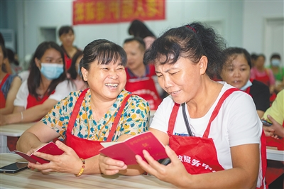 今年以来,琼海市芳姐家政服务中心在政府部门的支持下,先后举办了3期高端月嫂、老人护理技能培训班。来自该市城乡的200多名妇女获得免费培训,参加培训有困难的妇女还获得额外补贴,有效提高月嫂的技能素质,拓宽了创业就业渠道。特约记者 蒙钟德 摄