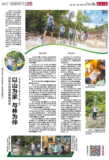 “我在这里工作、结婚、生儿育女,事业和生活都和这片森林紧密联系在一起了。”卓仲英说起这些来语气中满是自豪,“10年来,我见证了尖峰岭林区的巡逻和快速处置机制不断完善和常态化。现在,海南热带雨林国家公园管理局尖峰岭分局区域内的盗伐、滥伐、非法猎捕野生动物的现象得到有效遏制,生态资源得到有力保护,山更青了,水也更绿了。”