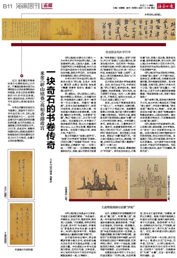 米芾在宋徽宗时被召为书画博士,其留存于世的大字作品仅有3件,《研山铭卷》就是其中之一。这件作品曾为历代宫廷或民间收藏名家收藏,由于历史原因,在清朝雍正年间流落到日本。2002年,命途多舛、曾颠沛流离的《研山铭卷》由国家文物局指定的文物收藏单位斥资2999万元购回,后藏于北京故宫博物院。