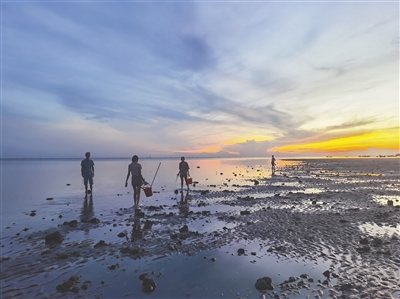 住进民宿体验赶海,正成为当地旅游新“标配”。李小兵告诉高山,博纵村这片海潮汐规律性强,亦无暗礁,安全度高。同时,这里还是海南白蝶贝省级自然保护区,拥有丰富多样的生物。