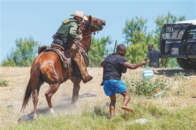在社交媒体上广泛传播的照片和视频显示,美国执法人员戴牛仔帽、骑着马,用形似马鞭或缰绳的长索朝移民挥舞,还有执法人员策马追逐移民。一些网友评论,这些画面令人想起美国奴隶制时期白人虐待黑人的场景。