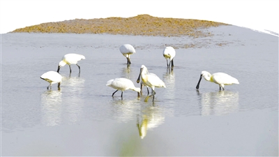 在河南黄河湿地国家级自然保护区孟津段拍摄的白琵鹭。新华社发