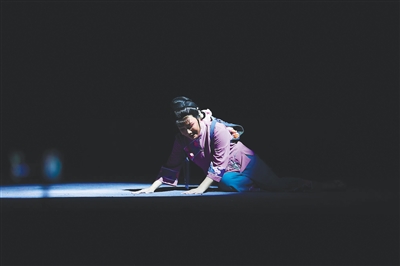 第六场,李荷花悲痛欲绝地在王云鹏的“坟墓”前哭泣时,遇到了在朝鲜战场上负伤奉命回国养伤的王云鹏。剧情出现大转折,两位主角经历大悲大喜、大起大落,这十分考验他们的表演功力。