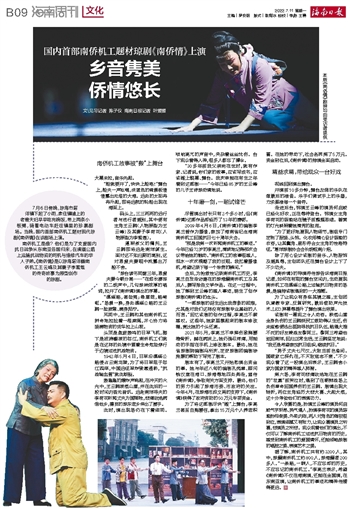 “琼台读书同窗三年,恩爱夫妻今朝分离……”在悠长凄凉的二胡声中,几句琼味浓厚的唱词,拉开了《南侨情》演出的序幕。