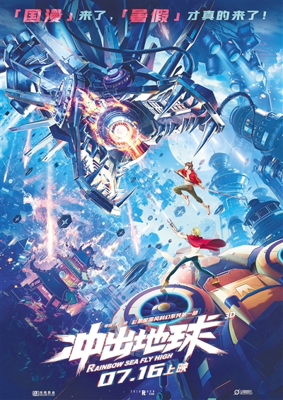 暑期档怎么离得开动画片?《冲出地球》这部动画片描绘了一个星际间可以自由通航的未来世界。一场陨石雨毁掉了大半个地球。代表外星球高等文明的“银河眼”来到地球,以援助为名提出所谓的“天墙计划”,意在封锁地球,限制地球人走向宇宙。最终,少年麦当在朋友的帮助下踏上了“冲出地球”的征程。