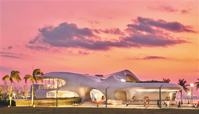 海口湾畔的云洞图书馆。 本报记者 封烁 摄