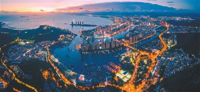 晚霞映照下的三亚夜景迷人。 本报记者 李天平 摄