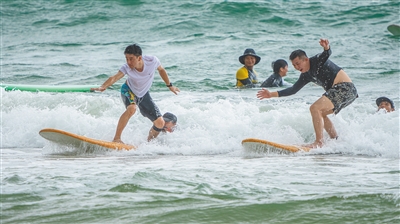 在万宁日月湾,夏日冲浪正当时。 本报记者 袁琛 摄