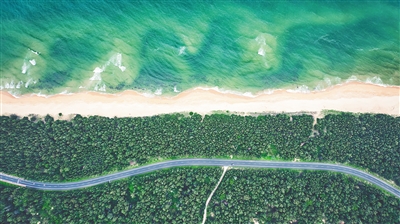 俯瞰万宁滨海旅游公路春园湾段。 本报记者 封烁 摄