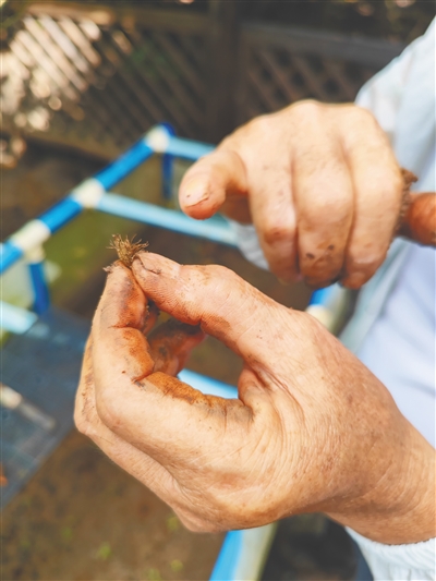 有时候,破坏者还是防不胜防。比如软体的石磺能顺着纱网爬进培育箱,压在幼苗上导致其叶片变形。见此情形,王式军会立即上前将“坏家伙”拎走扔掉。
