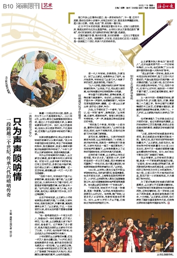 操着一口纯正的东北腔,显然,丛氏父子二人不是海南本地人。2021年4月,丛洋从黑龙江省歌舞剧院民族乐团,通过人才引进到海南大学,从事唢呐教学科研工作。此行,他为的是唢呐,但他从东北老家带来的,不仅是唢呐,还有整个丛氏家族与唢呐的不解之缘。