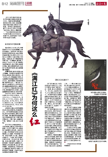 岳飞的《满江红·怒发冲冠》名气非常之大,以至于只要有人提及“满江红”这一词牌,就立马想起岳飞。可以说,正是因为岳飞,才让《满江红》红遍天下。宋词研究者王兆鹏教授曾对宋词进行排行,岳飞的这首《满江红》高居排行榜第二,仅次于苏轼的《念奴娇·赤壁怀古》,可见其影响。事实上,岳飞的《满江红》红遍天下,还是有一个经典化的过程。