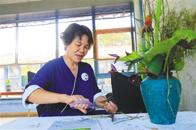 夏姐喜欢插花。 本报记者 刘婧姝 摄