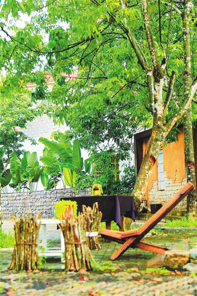 在林下,一处圆弧形的座椅层层叠叠,吸引了记者的注意。“这里是林下音乐舞台,可以进行长桌宴,村里的许多活动都可以在此举行。”在夏姐的观念里,民宿是根植于乡村的,要进行一定程度的回馈与共享。“空闲时,我会给村里的妇女上花艺课、礼仪课等,时间长了大家都认识我。”