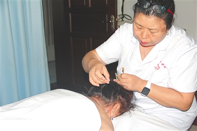 萨仁医生在为患者针灸。受访者供图