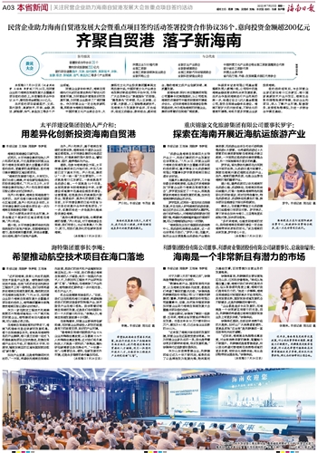 ■ 本报记者 周晓梦 王培琳 李梦瑶对于为期3天的“海南之旅”,徐瑞泽是带着想法和计划来的。