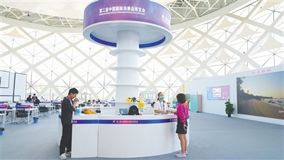 消博会新闻中心。本报记者 张茂 实习生 冷静怡 摄