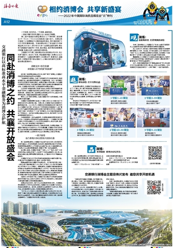为参展商提供一站式金融服务、为消博会搭建思想和贸易的交流平台、为逛展观众带来新奇的金融消费体验……交通银行早已精心谋划,并且举全集团之力,充分利用自身国际化、综合化优势,展示服务、产品、技术、桥梁等多方面的硬实力。