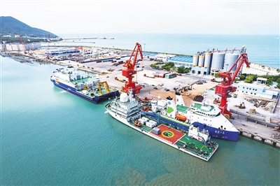 三艘科考船同时停靠南山港科考码头。