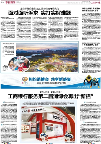 消博会期间,工商银行将围绕参展观众的多元化金融需求,提供以“休闲趣味”“便捷服务”为中心的全方位金融服务。