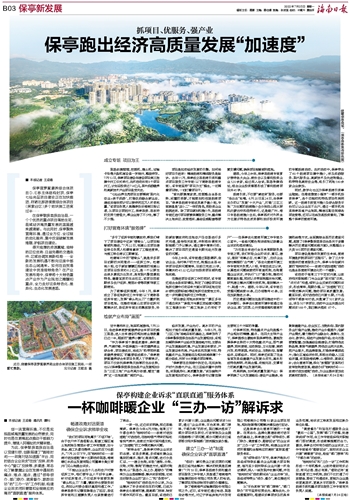 这是保亭优化营商环境的一个缩影。在常态化、品牌化搭建政商对话平台的基础上,保亭建立起“领导领办、部门联办、调度督办、跟踪回访”的企业诉求“三办一访”工作机制,构建企业诉求闭环管理和全程响应的高效“直联直通”服务体系。
