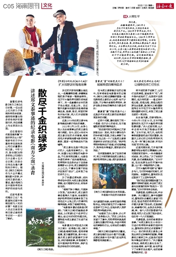 2022年3月29日,全身心投入生态修复事业的郑文泰在海口病逝。如今,回忆4年间与郑文泰交往的点点滴滴,海南师范大学新闻传播与影视学院教授、国家一级导演成科不胜嘘唏。