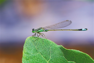 豆娘落在叶片上。资料图