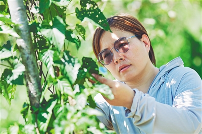 曹凤勤在农庄观测瓢虫。