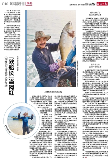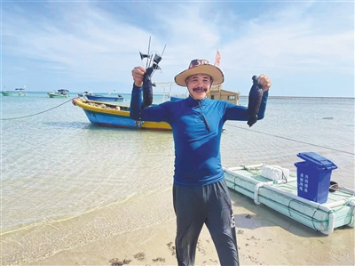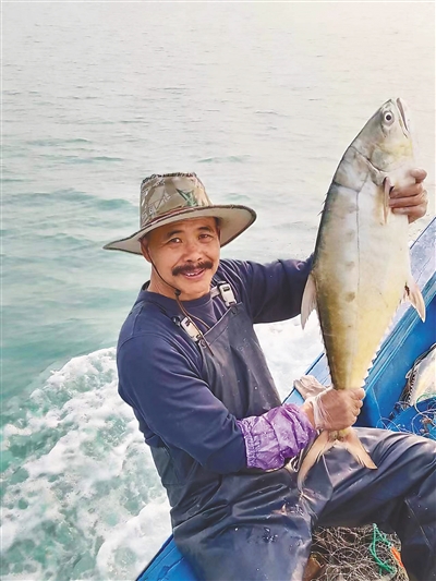 欧波在海上捕鱼。本版图片均由受访者提供