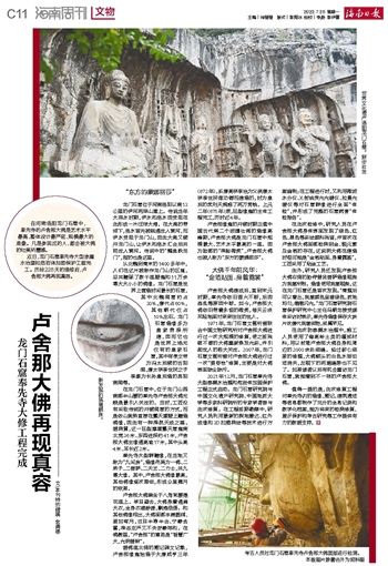 近日,龙门石窟奉先寺大型渗漏水治理和危岩体加固保护工程完工。历经228天的维修后,卢舍那大佛再现真容。